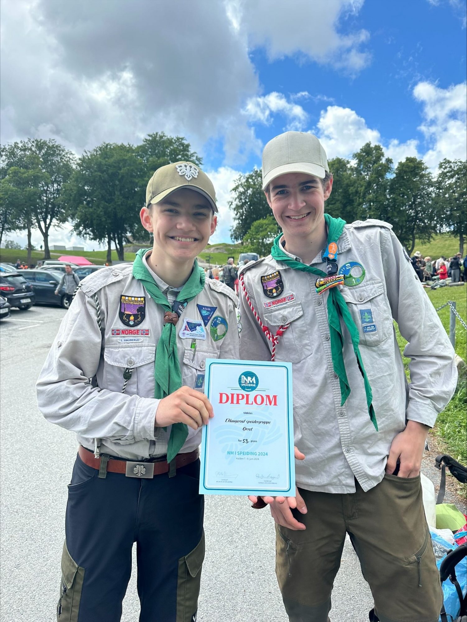 På grunn av at patrulje Ørret vant årets kretskonk, ble de en av de fem deltagende patruljene fra Oslo i NM. Med oppmøte ved kirka 14:00, var det tidlig start på helgas tur. Speiderne kastet seg i bil for å komme til festningen i Halden; Fredriksten Festning. Én av speiderne var på leirskole og kom litt etter resten. Det var en del kø og vi kom fram til innsjekk, samtidig som at middag hadde startet. Imens noen spiste middag, jobbet noen med å sette opp camp (se bilde).